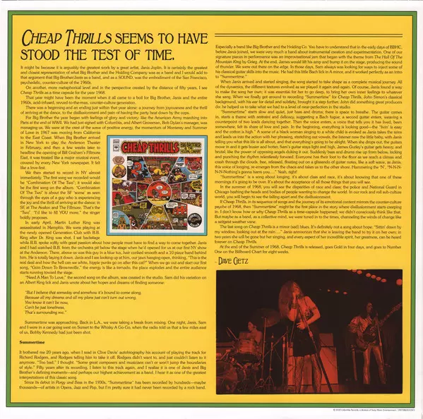 With this album, the band celebrated their landmark debut 50 years ago. It was also the band's most important LP around singer Janis Joplin and is still considered one of the milestones of the '68 generation. The album Cheap Thrills was released on August 12, 1968 and instantly became a number one album. A reworked version is now available for t...