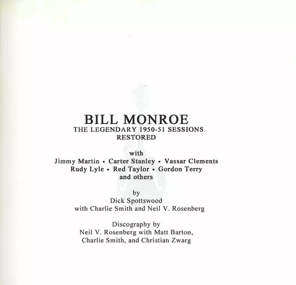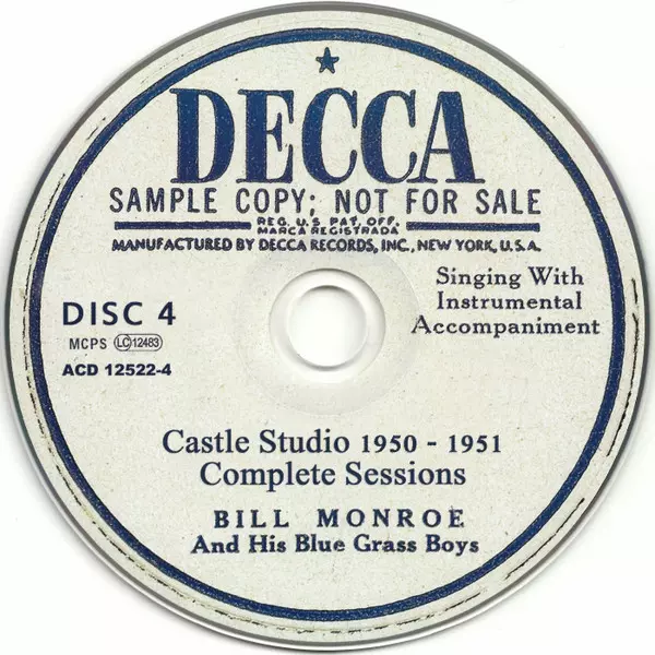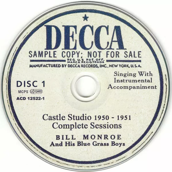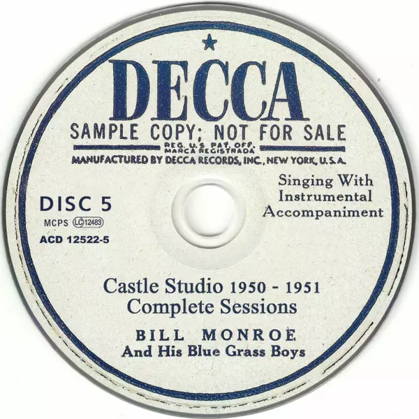 Bill Monroe & His Blue Grass Boys: Castle Studio 1950 - 1951 (Complete Sessions) La version sur 5CD en Norme édition. Cette édition particulière a été publiée en L'Europe dans la maison d'édition RWA (richard weize archives) Le 24 février 2017. Album couvre tous les genres Folk, World, & Country et Bluegrass. Digibook.