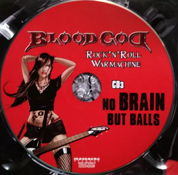Blood God: Rock'N'Roll Warmachine La version sur 3CD en Norme édition. Cette édition particulière a été publiée en L'Europe dans la maison d'édition Massacre Records Le 29 septembre 2017. Album couvre tous les genres Rock et Heavy Metal.