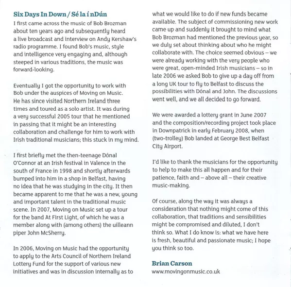 | Artiste | John McSherry | Bob Brozman | Dónal O'Connor |
