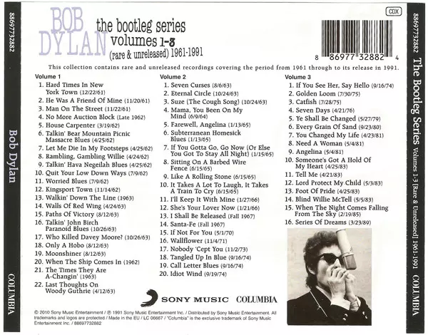 Bob Dylan: The Bootleg Series Volumes 1-3 [Rare & Unreleased] 1961-1991 La version sur 3CD en Norme édition. Cette édition particulière a été publiée en L'Europe dans la maison d'édition Columbia En collaboration avec Sony Music Le 8 mars 2021.