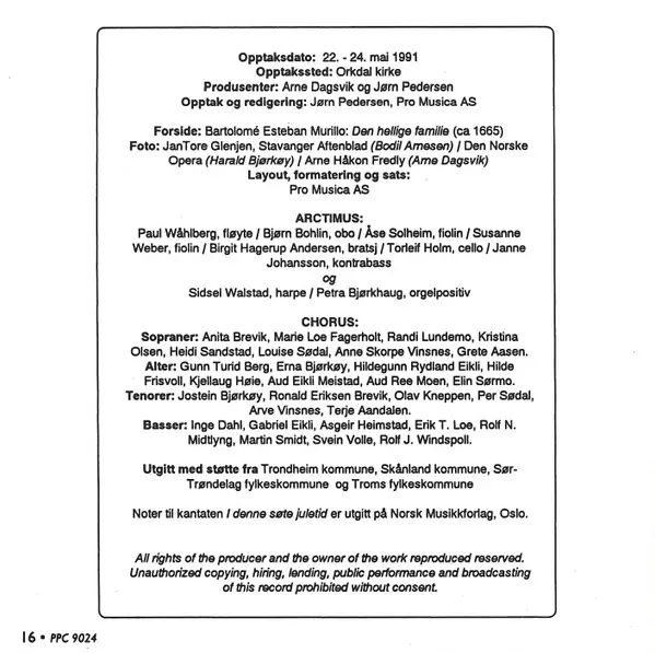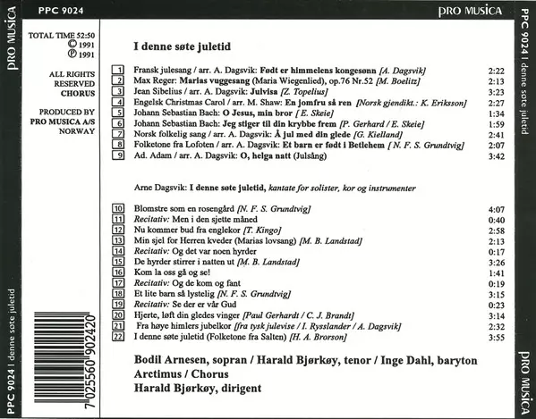 | Artiste | Bodil Arnesen | Arctimus | Harald Bjørkøy | Arne Dagsvik | Chorus |