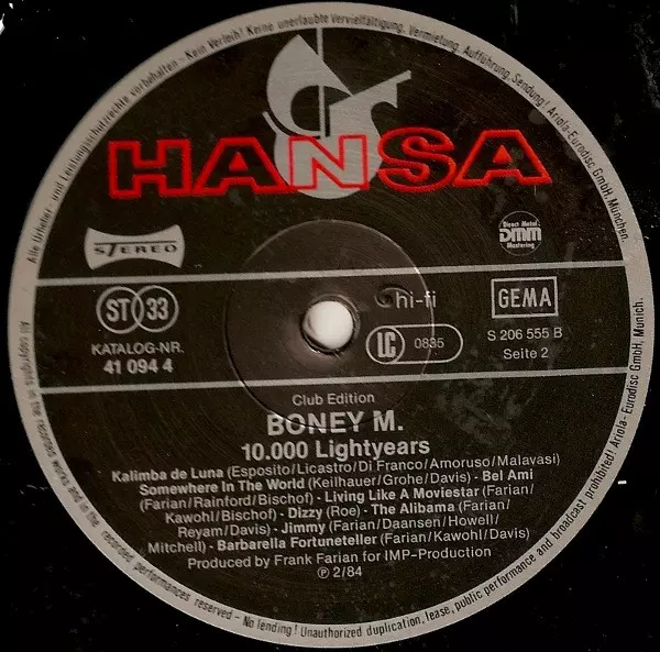 | Plus d'informations sur les disques vinyles | Club Edition Hansa (Germany) Reissue 1984 |