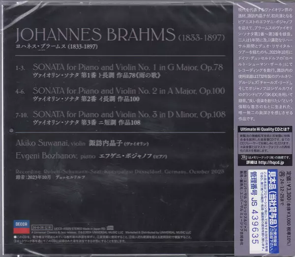 | Artiste | Johannes Brahms | Evgeni Bozhanov | Akiko Suwanai |