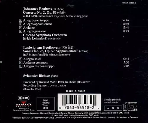 | Artiste | Ludwig van Beethoven | Johannes Brahms | Sviatoslav Richter | Chicago Symphony Orchestra | Erich Leinsdorf |