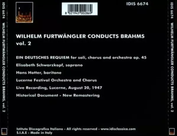 | Titre | Furtwängler Conducts Brahms, Vol. 2 |