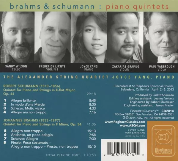 | Artiste | Johannes Brahms | Robert Schumann | Alexander String Quartet | Joyce Yang |