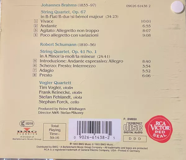 | Artiste | Johannes Brahms | Robert Schumann | Vogler Quartett |