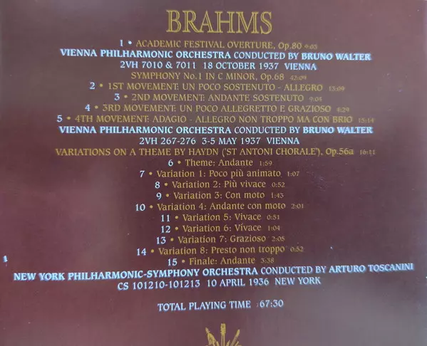 | Artiste | Wiener Philharmoniker | Johannes Brahms | Bruno Walter | Arturo Toscanini |