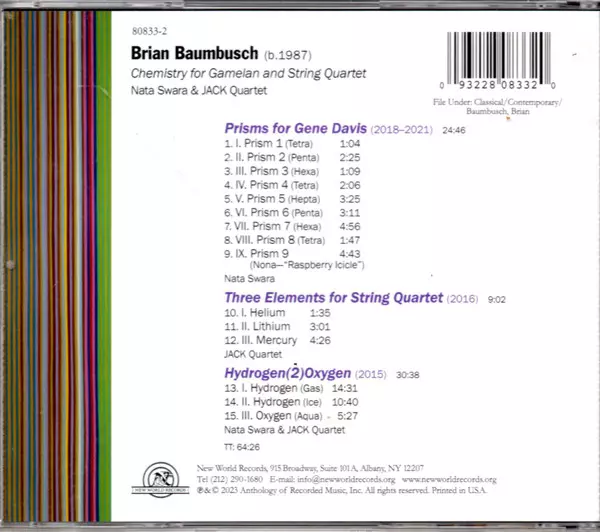 | Titre | Chemistry For Gamelan And String Quartet |