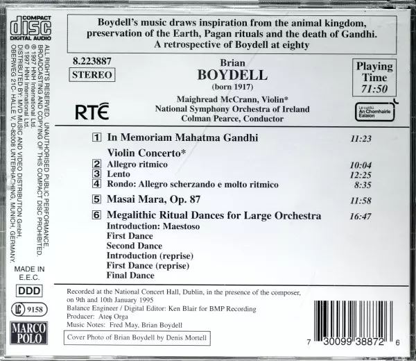| Artiste | Colman Pearce | National Symphony Orchestra Of Ireland | Brian Boydell | Maighread McCrann |
