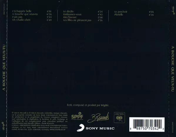 Brigitte: À Bouche Que Veux-tu La version sur CD en Norme édition. Cette édition particulière a été publiée en L'Europe dans la maison d'édition B. Records En collaboration avec Columbia et Sony Music Le 17 février 2015. Album couvre tous les genres Pop et Folk, World, & Country. Jewel Case.