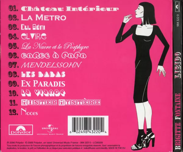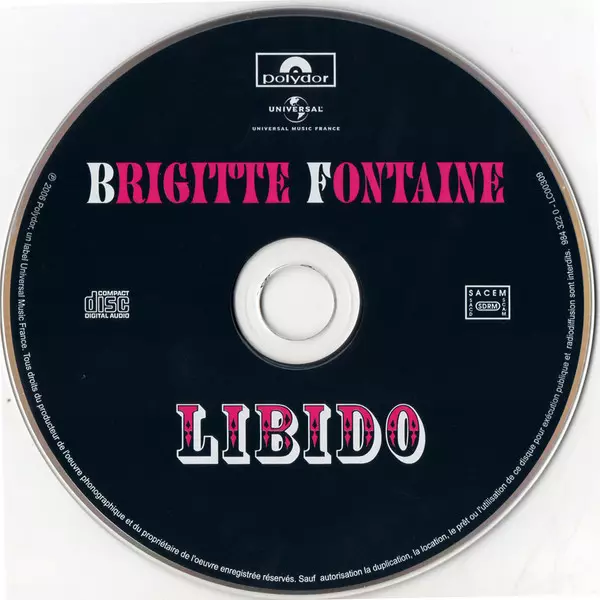 Brigitte Fontaine: Libido La version sur CD en Norme édition. Cette édition particulière a été publiée en France dans la maison d'édition Polydor Le 14 novembre 2006. Album couvre tous les genres Pop et Chanson.