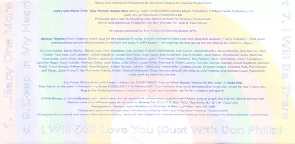 | Acoustic Guitar, Electric Guitar Dan Petty | Backing Vocals Britney Spears, Nikki Gregoroff | Keyboards, Drum Programming, Bass Eric Foster White | Producer, Arranged By Eric Foster White | Recorded By, Mixed By Chris Trevett, Eric Foster White | Written-By Eric Foster White | |||
