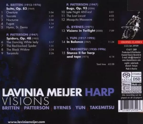 | Artiste | Benjamin Britten | Lavinia Meijer | Toru Takemitsu | Isang Yun | Paul Patterson | Garrett Byrnes |