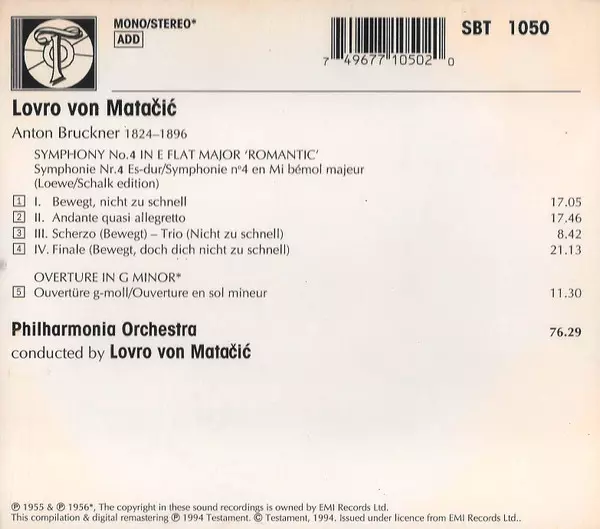 | Artiste | Philharmonia Orchestra | Anton Bruckner | Lovro Von Matacic |