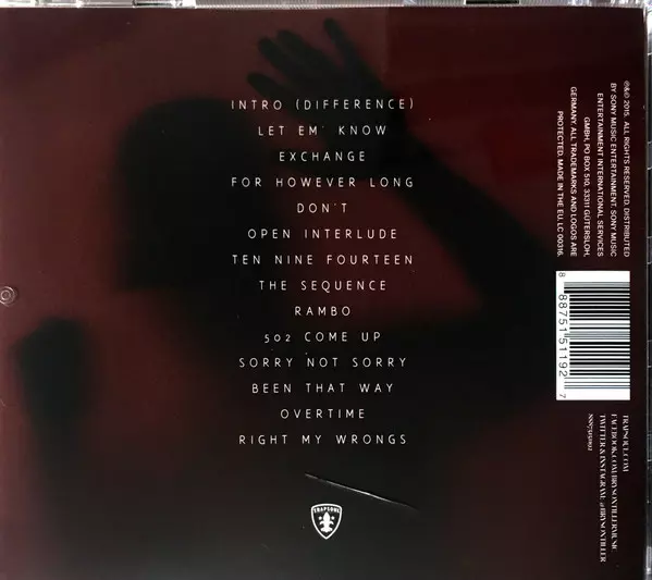 Bryson Tiller: Trapsoul La version sur CD en Norme édition. Cette édition particulière a été publiée en L'Europe dans la maison d'édition Trapsoul Le 8 janvier 2016. Album couvre tous les genres Hip Hop, Pop-Rap, Contemporary R&B, Trap, Alternative R&B et Trap Soul.