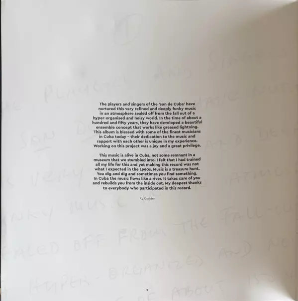 Bass Orlando "Cachaíto" López | Composed By Israel "Cachao" López | Congas Ibrahim Ferrer | Guiro Lázaro Villa | Guitar Ry Cooder | Maracas Alberto "Virgilio" Valdés | Piano Rubén González | Trumpet Manuel 'Guajiro' Mirabal | Udu [Drum] Joachim Cooder