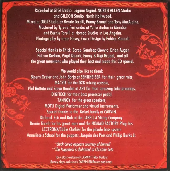 Bass, Bass [Piccolo Bass] Bunny Brunel | Composed By Bunny Brunel | Drums Virgil Donati | Electric Piano Chick Corea | Guitar Tony MacAlpine