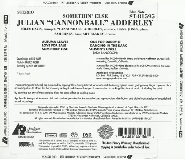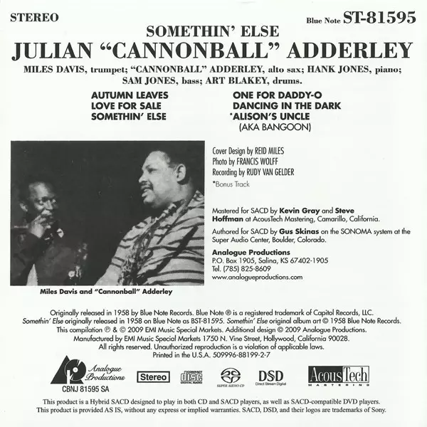 | Maisons d'édition | Analogue Productions | Blue Note |