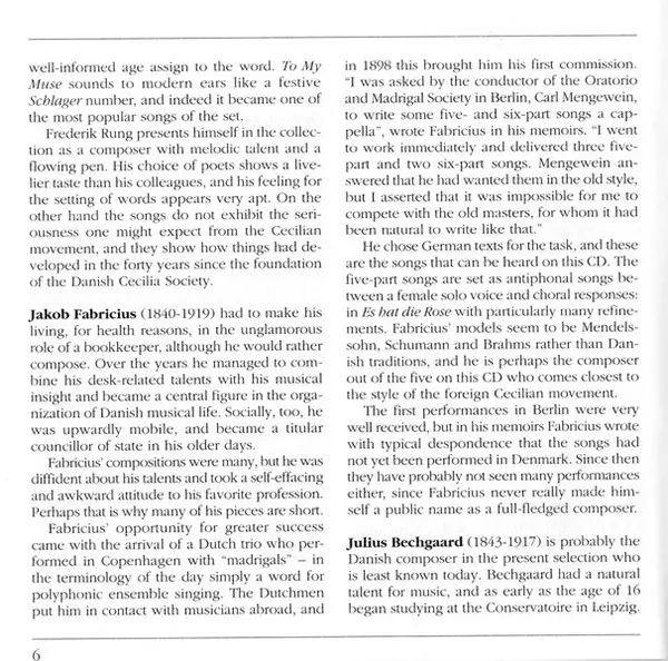 | Frederik Rung: Seks Sange , Op. 39 (Six Songs) | 10:52 min | |