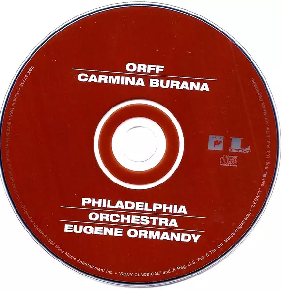 | Artiste | Carl Orff | The Philadelphia Orchestra | Eugene Ormandy | Janice Harsanyi | Rudolf Petrak | Harve Presnell | The Rutgers University Choir | F. Austin Walter |