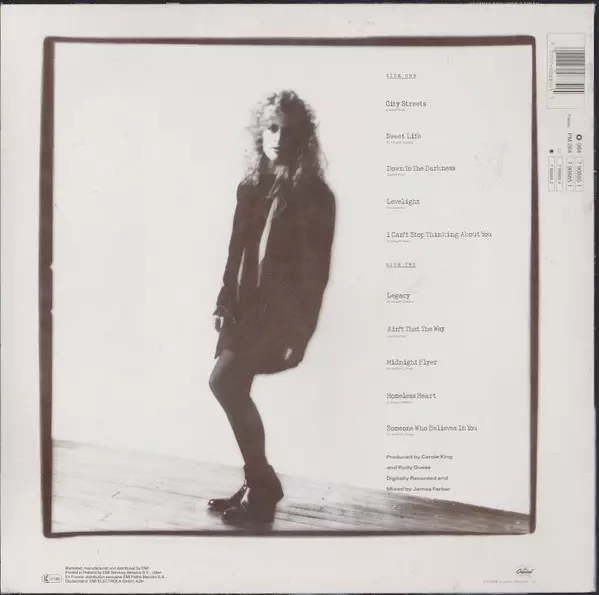 Carole King: City Streets La version sur Le vinyle LP en Norme édition. Cette édition particulière a été publiée en L'Europe dans la maison d'édition Capitol Records année 1989. Album couvre tous les genres Rock, Pop Rock et Folk Rock.