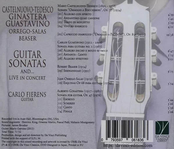 | Artiste | Alberto Ginastera | Mario Castelnuovo Tedesco | Carlos Guastavino | Robert Beaser | Carlo Fierens | Juan Orrego Salas |