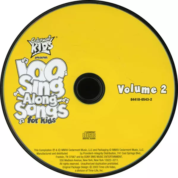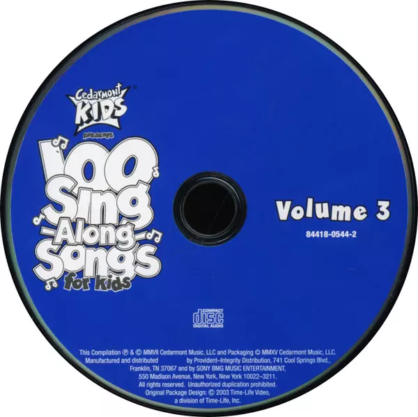 Cedarmont Kids: 100 Sing Along Songs For Kids La version sur 3CD en Norme édition. Cette édition particulière a été publiée en ÉTATS-UNIS dans la maison d'édition Cedarmont Music Le 17 avril 2007. Album couvre tous les genres Pop, Folk, World, & Country, Les enfants et Folk.