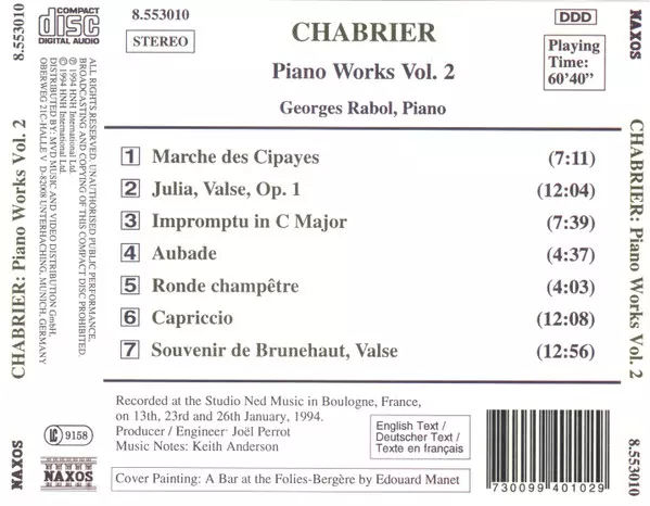 | Artiste | Emmanuel Chabrier | Georges Rabol |