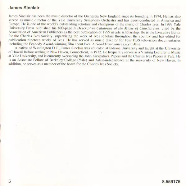 | Artiste | Charles Ives | Irish National Symphony Orchestra | James Sinclair | Alan Feinberg |
