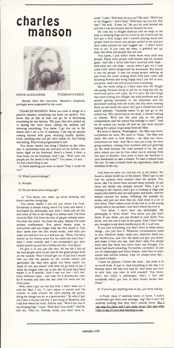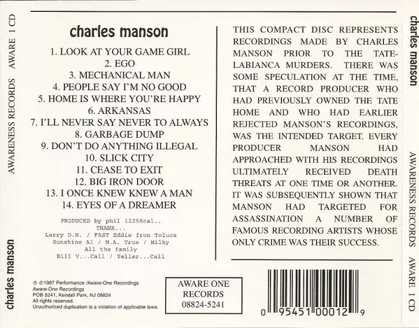 | Artiste | Charles Manson |