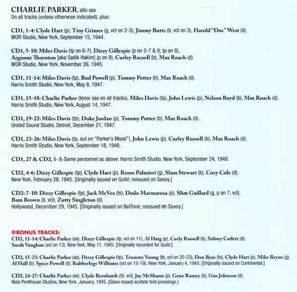 | Artiste | Charlie Parker |