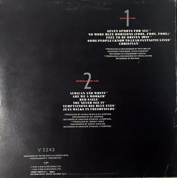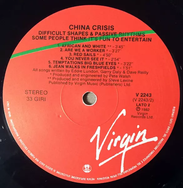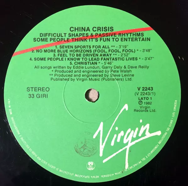 China Crisis: Difficult Shapes & Passive Rhythms - Some People Think It's Fun To Entertain La version sur Le vinyle LP en Norme édition. Cette édition particulière a été publiée en Italie dans la maison d'édition Virgin année 1982. Album couvre tous les genres Pop, Musique électronique, New Wave et Synth-Pop.