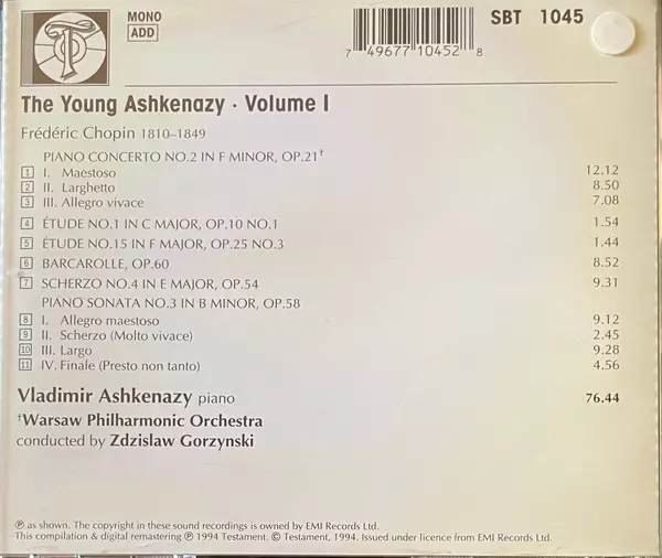 | Titre | The Young Ashkenazy Volume I |