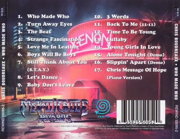 Chris Boudreaux: Who Made Who La version sur CD en Norme édition. Cette édition particulière a été publiée en ÉTATS-UNIS dans la maison d'édition Metallic Blue Records Le 5 juillet 2024. Album couvre tous les genres Rock, Hard Rock, Heavy Metal et AOR.