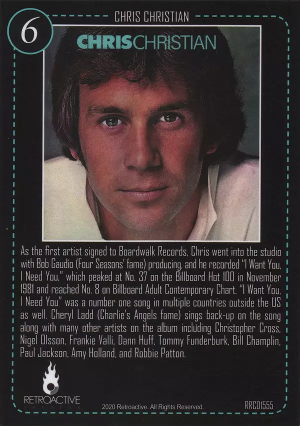 Arranged By, Piano David Foster | Bass David Hungate | Drums Mike Baird | Guitar Dann Huff | Instruments [All Other], Vocals [All] Chris Christian | Written-By Chris Christian, J.C. Crowley | |||