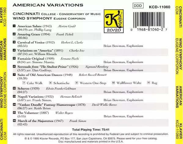 | Artiste | Eugene Corporon | Cincinnati Wind Symphony | Brian Bowman |