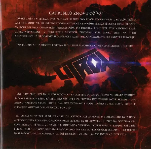 Citron Rebelie Vol.2 is an album that was released in 2016. It is a blend of ska, punk and reggae music. The album has a very positive and upbeat vibe and is perfect to listen to while driving or exercising.