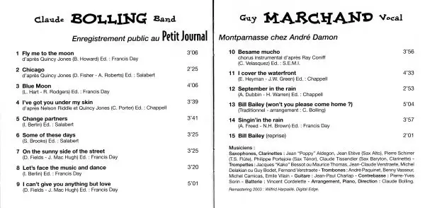 | Artiste | Claude Bolling Big Band | Guy Marchand |