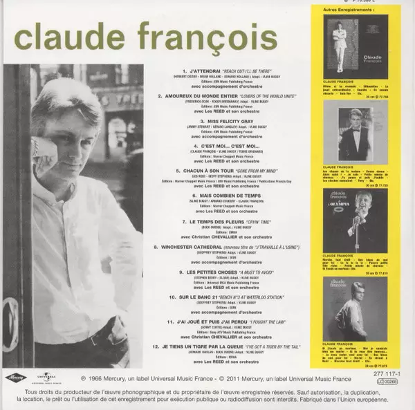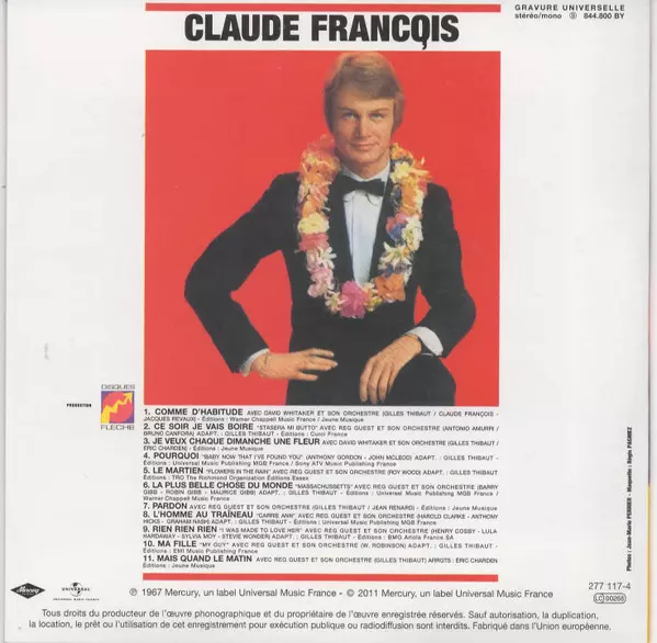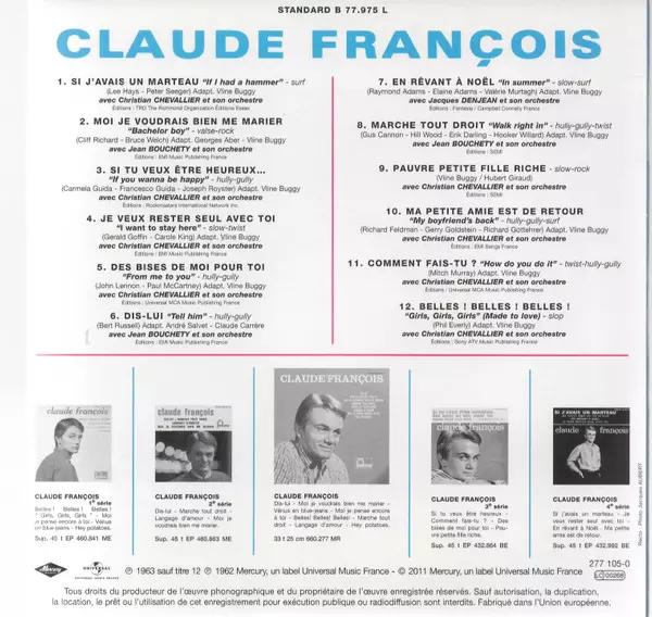 Claude François: L'intégrale Des Albums Originaux 1963-1972 La version sur 13CD/Coffret en Remasterisé édition. Cette édition particulière a été publiée en L'Europe dans la maison d'édition Mercury Le 12 août 2022. Album couvre tous les genres Rock, Pop, Pop Rock et Chanson.
