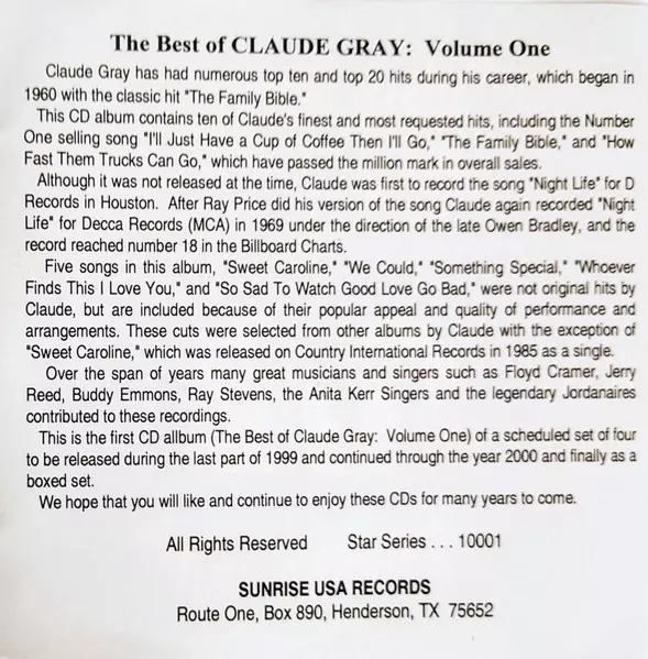 | Titre | "The Best" of Claude Gray VOL 1. |
