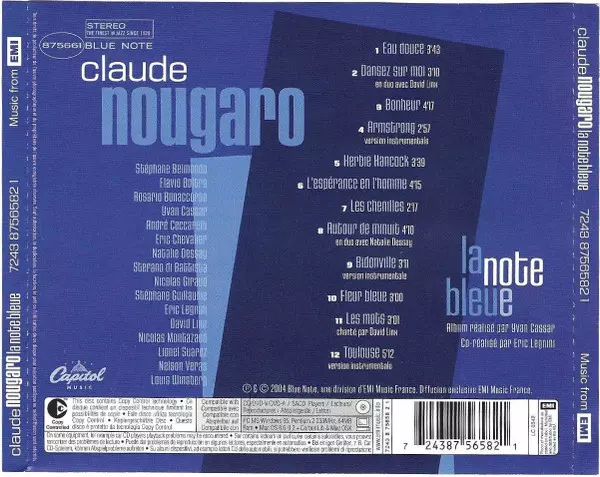Claude Nougaro: La Note Bleue La version sur CD en Norme édition. Cette édition particulière a été publiée en L'Europe dans la maison d'édition Blue Note En collaboration avec Capitol Music Le 26 novembre 2004. Album couvre tous les genres Jazz, Vocal, Chanson et Post Bop.