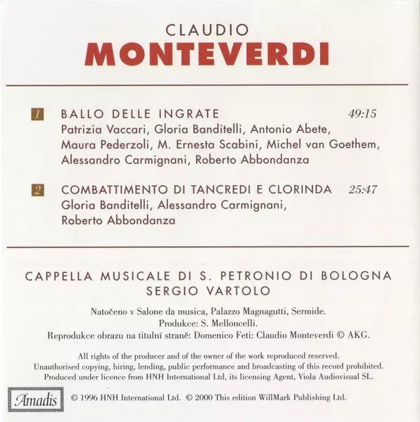 | Artiste | Claudio Monteverdi | Sergio Vartolo | Cappella Musicale Di S. Petronio Di Bologna |