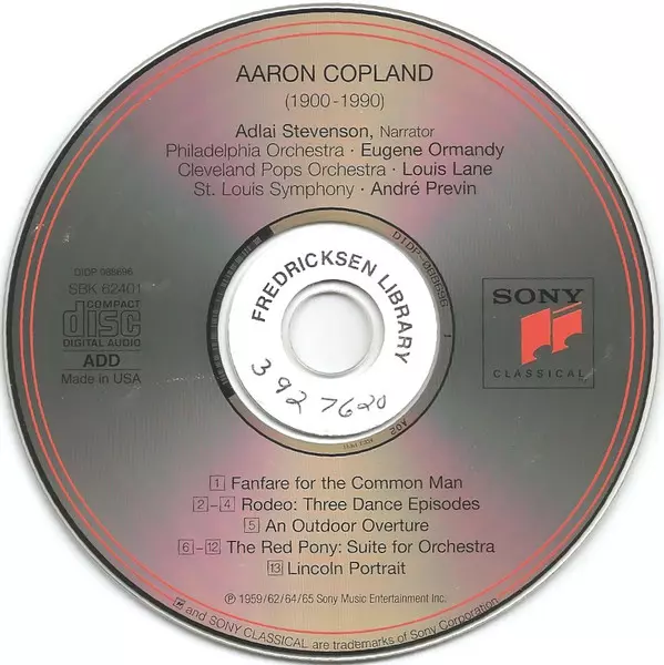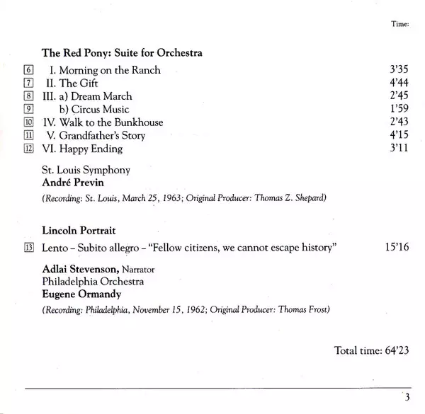 | Artiste | André Previn | Eugene Ormandy | Aaron Copland | Louis Lane | Adlai Stevenson |