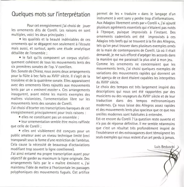 | Artiste | Arcangelo Corelli | Philippe Grisvard | Luis Beduschi |