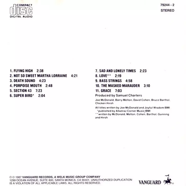 Product Information One of the first acid rock blossoms on the west coast and still an amazing high. Includes "Section 43" (like the movie Monterey Pop) and the hypnotic swirls of "Not So Sweet Martha Lorraine" and "Bass Strings". Review , "Highlights include the early Pink Floyd reminiscent instrumental 'Section 43', the spacey 'Bass Strings' (...