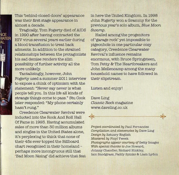 This collection of greatest hits at an affordable price is now also available in Germany. Including all the hits like "Proud Mary", "Up Around The Bend" and the #1 hit "Bad Moon Rising".