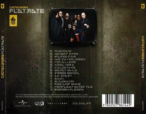Culcha Candela: Flätrate La version sur CD en Norme édition. Cette édition particulière a été publiée en Allemagne, Autriche et Suisse dans la maison d'édition Urban Le 25 novembre 2011. Album couvre tous les genres Musique électronique, Reggae, Hip Hop, Electro, Pop-Rap, Dancehall et Euro House.