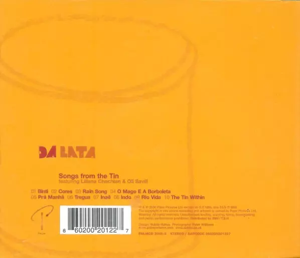 Da Lata: Songs From The Tin La version sur CD en Norme édition. Cette édition particulière a été publiée en ROYAUME-UNI dans la maison d'édition Palm Pictures Le 1 août 2000. Album couvre tous les genres Musique électronique, Musique latine, Samba et Jazzdance.